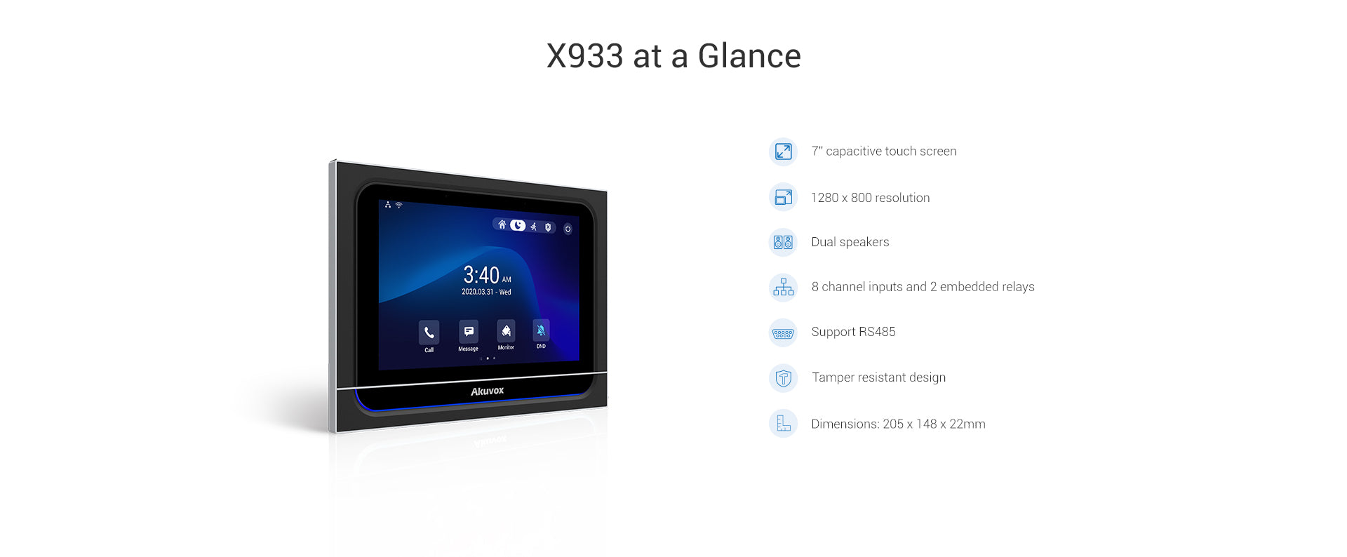 The first product of Akuvox’s X series indoor monitor, Akuvox X933W strikes a perfect balance between fashion and technology.